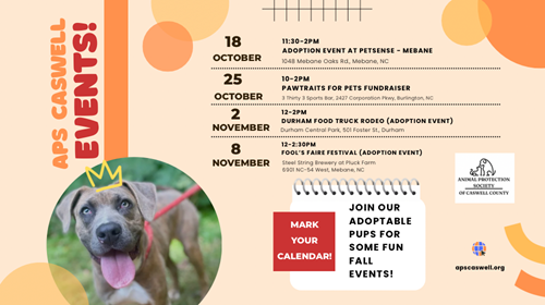 You can see all of our wonderful pets by visiting our available pets page - http://apscaswell.org/available-pets/ or on our APS Caswell Facebook page.
